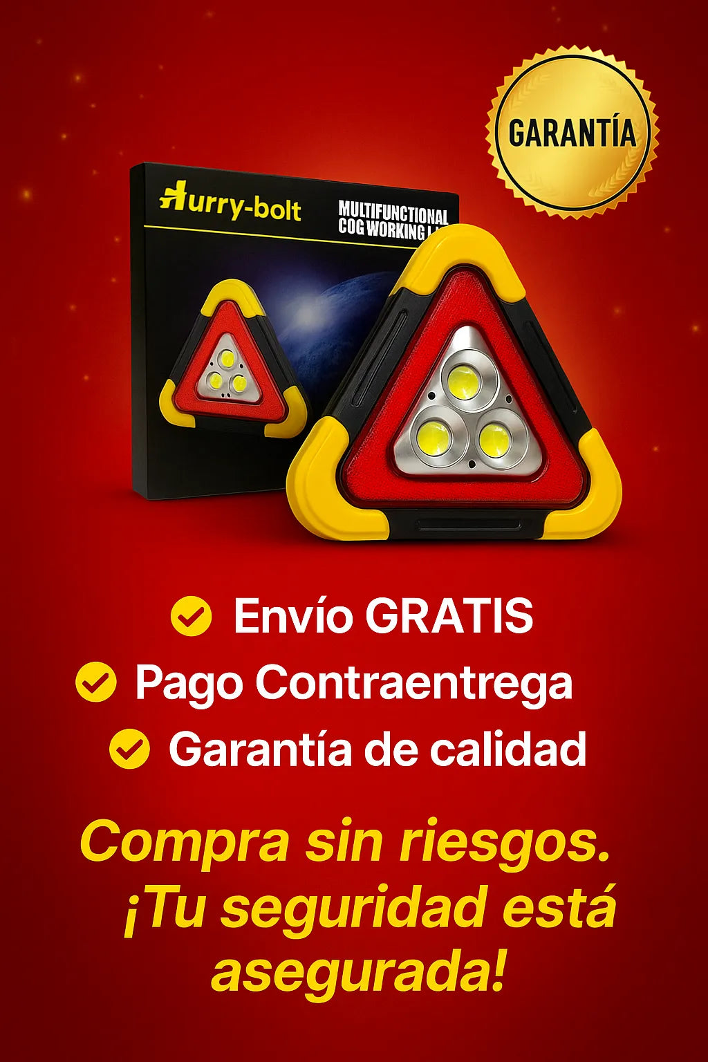 El Hurry Bolt es un accesorio de seguridad complementario. Aporta mayor visibilidad gracias a sus luces LED, pero lo ideal es llevar ambos (el convencional y este). Sin embargo, en la práctica, la mayoría de conductores lo usan como reemplazo directo porque ofrece mucha más seguridad que el triángulo reflectivo tradicional.